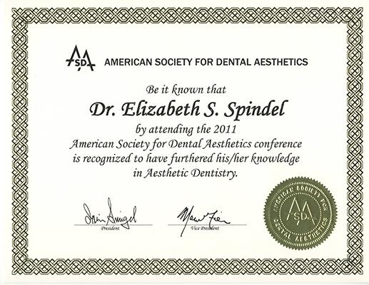 Dr. Spindel received awards by American Society for Dental Aesthetics and the International Academy of Comprehensive Aesthetics.