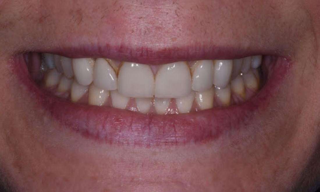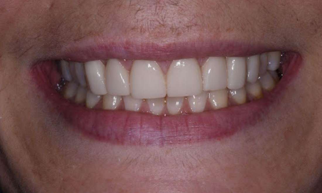 A 36 year old female had veneers placed when she was 22 years old. The gums had receded and the margins of the crowns showed black edges. New veneers were made to give the patient the smile she dreamed of.